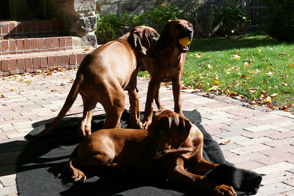 MASVINGO Imara Themba & Fumo Jamo DE KIUNGWANAFür unseren A-Wurf mit MASVINGO Imara Themba (PEDIGREE) haben wir den Rüden Fumo Jamo DE KIUNGWANA (PEDIGREE) ausgewählt. Fumo Jamo entstammt einer rein afrikanisch gezogenen Linie des bekannten französischen Kennel DE KIUNGWANA. Er ist ein kräftiger mittelgroßer Rüde mit typischem Kopf. Der Vater des Rüden kam in GLENAHOLM, dem ältesten noch bestehenden Rhodesian Ridgeback Zwinger in Süd-Afrika auf die Welt.