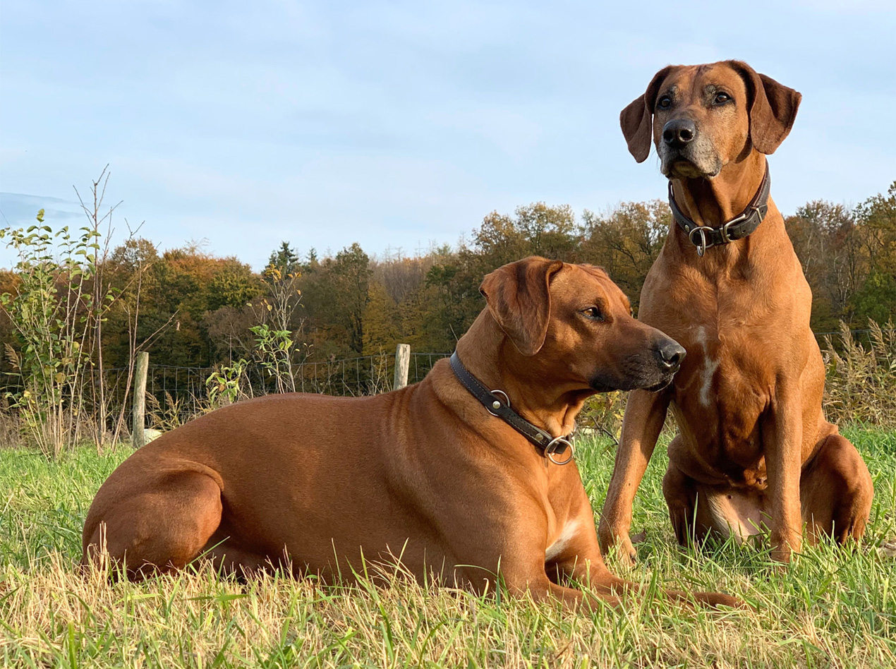 Mit unserer Hündin Imara Themba haben wir 2013 einen ersten Wurf gewagt und wollten auf jeden Fall einen Welpen behalten. Unsere Wahl fiel auf die Letztgeborene. Afra, so heißt sie, hat sich zu einer prächtigen Hündin entwickelt. Eine Zeit lang gehörte noch Akim, ein stattlicher Rüde zu unserem Rudel. Auch Afra hat uns im Jahr 2017 einen Wurf geschenkt, aus dem zwei Welpen bei uns geblieben sind. Nunmehr leben Afra, deren schlaue Tochter Bayo Blanka und ihr ausgeglichen freundlicher Sohn Bhengu Adnan Moyo mit uns im Mittelbrinker Forsthaus. Die drei haben sich zu einem wunderbaren Team entwickelt, das einen überallhin begleiten kann. Was will man mehr.